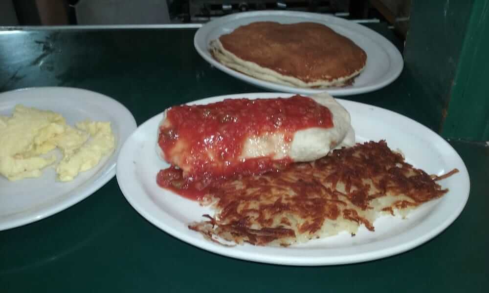 The Google directions took us a couple hundred yards too far, but I was determined to find it. So glad I did. We're traveling between Denver and Indiana. This breakfast was incredible. The eggs were scrambled perfectly. Too many places brown them. The hash browns were crispy on both side, the bacon and sausage were delicious. The pancakes are the best I've had anywhere but home. The service was friendly and efficient. Also took home pie that was very good.